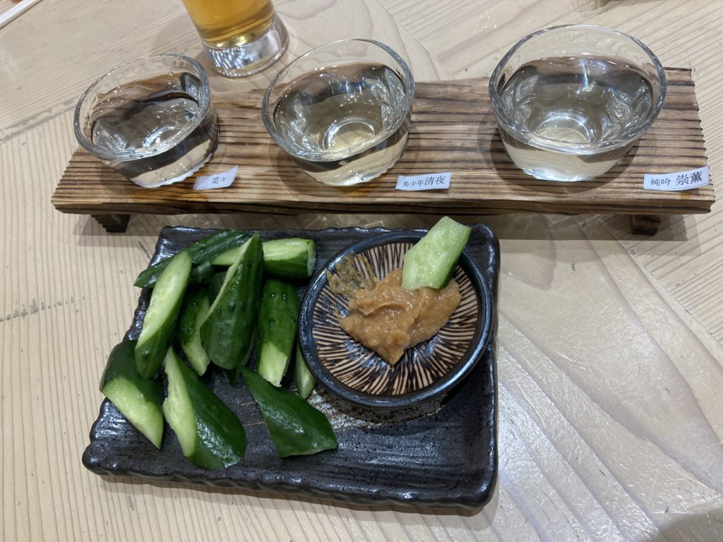 角打ちコーナーで、熊本の地酒とお手頃おつまみを楽しめます。
